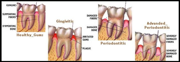 Gum disease refers to inflammation of the soft tissue (gingiva) and abnormal loss of bone that surrounds the teeth and holds them in place. Gum disease is the second most common cause of toothache. Gum disease is caused by toxins secreted by bacteria in “plaque” that accumulate over time along the gum line. This plaque is a mixture of food, saliva, and bacteria.