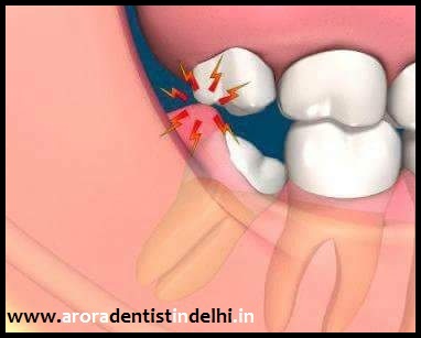 Gum disease : Most people are aware of the pain experienced during the eruption of these teeth. This generally happens because these partly erupted teeth are difficult to keep clean, and the accumulated food particles cause the gums around the tooth to get infected. Such an infection is felt as swelling and pain around the area. Sometimes the tooth is trying to erupt, but has not yet broken through the gums. When the upper tooth bites down onto this gum, pain can be caused.