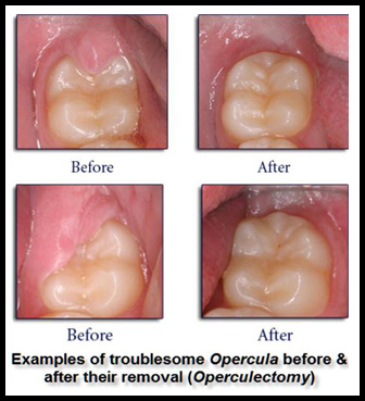 It involves removal of the gingival tissue covering an erupting tooth Sometimes, the gingival tissue over the erupting tooth doesn’t get uncovered totally as the tooth remains submerged in the mouth. It becomes a place where food and bacteria accumulate causing inflammation and pain. So, the gingival tissue is removed to allow the tooth to erupt normally.